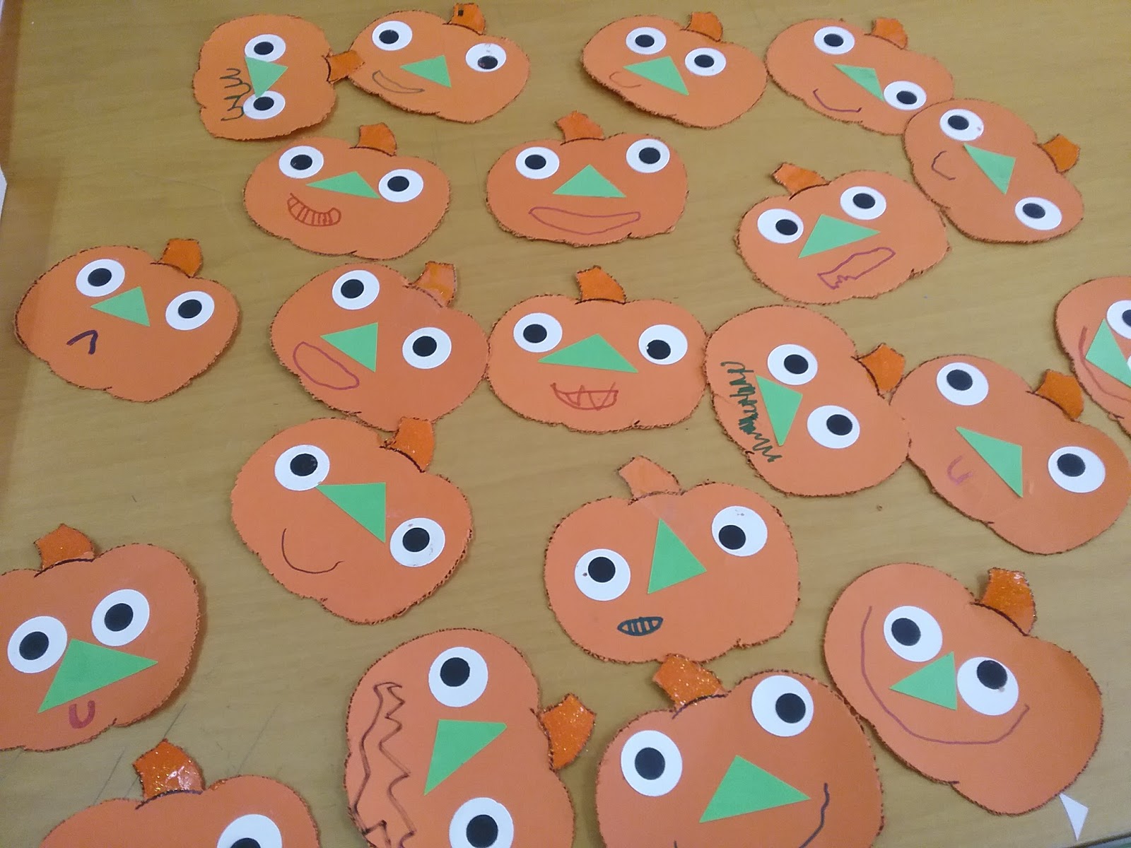 5 and 4 years-old students designed these cute Jack O' lanterns showing different emotions.